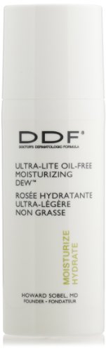 An oil, fragrance, and dye-free moisturizer for all skin types, including acne-prone skin. Contains Aloe Vera, vitamins A, E and C, and Grapeseed for comfortable hydration. Will not clog pores. Lanolin-free.DDF Ultra-Lite Oil-Free Moisturizing Dew , 1.7-Ounce Bottle - I strongly recommend you to get it at Amazon.com. They have Special offer this time.